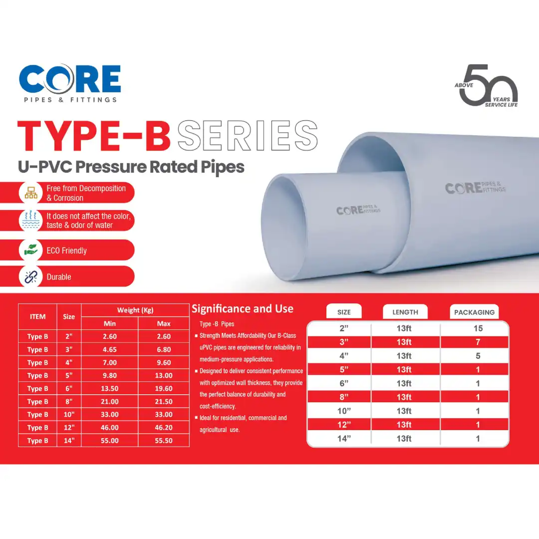 A revolutionary product line by the name “CORE PIPES & FITTINGS & SOIL WASTE AND VENT SYSTEM SWV” that deals with all kinds of sanitary, sewerage, pressure, and boring solutions products, including U-PVC PIPES & FITTING has been developed after a protracted process of diligent work.